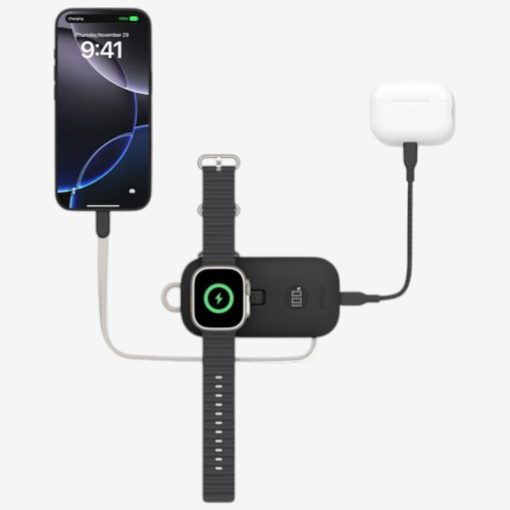 The Belkin Power Bank 10K with Apple Watch Charger is a compact 3-in-1 solution that charges iPhone, Apple Watch and any USB-C device at the same time.