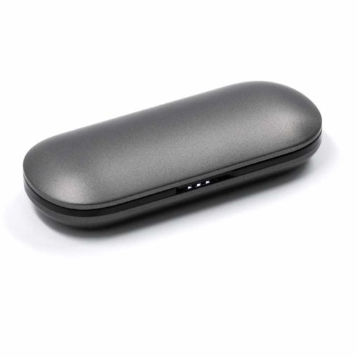 The compact metal charging case is durable, pocket-sized, and designed for professionals on the move.