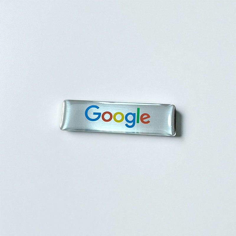 These custom epoxy name tags were produced for Google, featuring a premium stainless steel base with a crystal-clear epoxy coating that enhances colour vibrancy and provides long-lasting protection. Designed for a sleek and professional appearance, these name tags perfectly reflect Google’s dynamic brand identity.