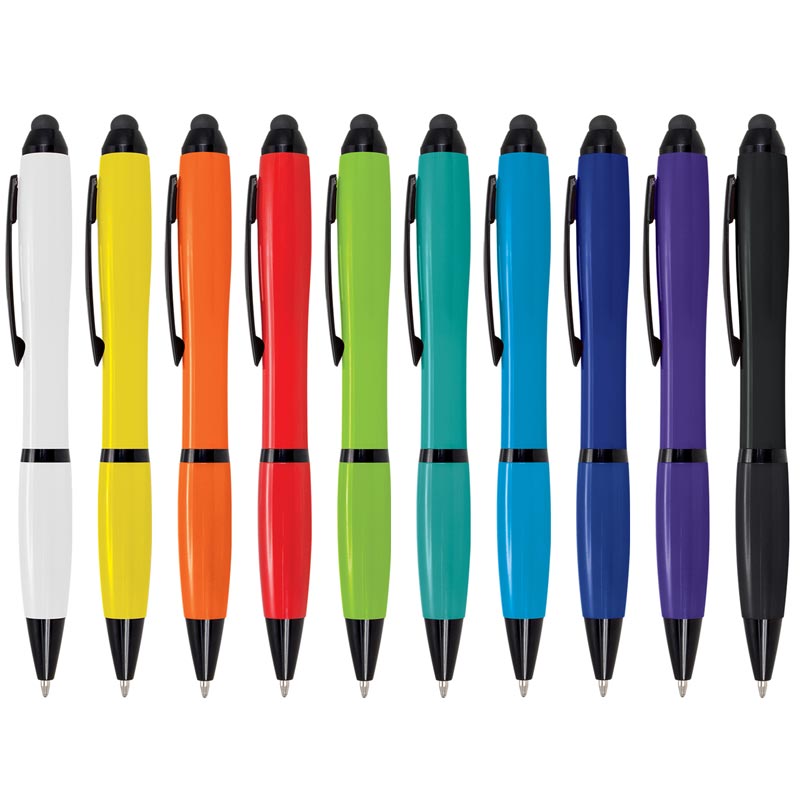 Features: Twist-action plastic ballpoint pen with a stylus.