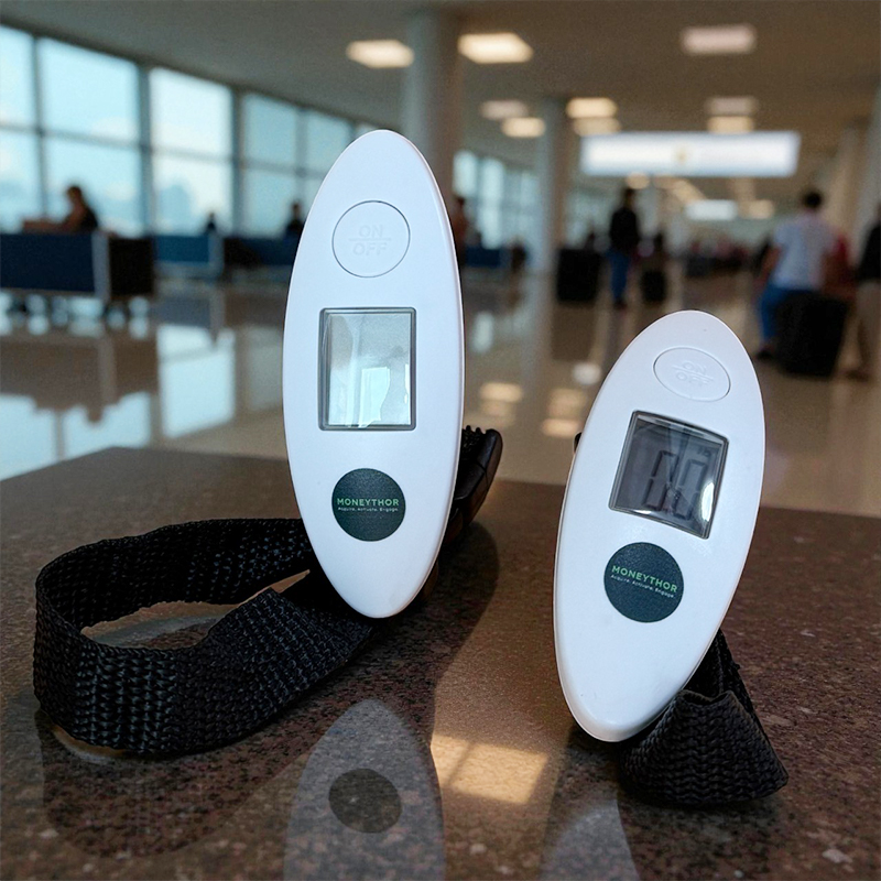 The WS-01 Customized Weighing Scale is a sleek, portable digital luggage scale designed and custom-branded exclusively for MONEYTHOR.
