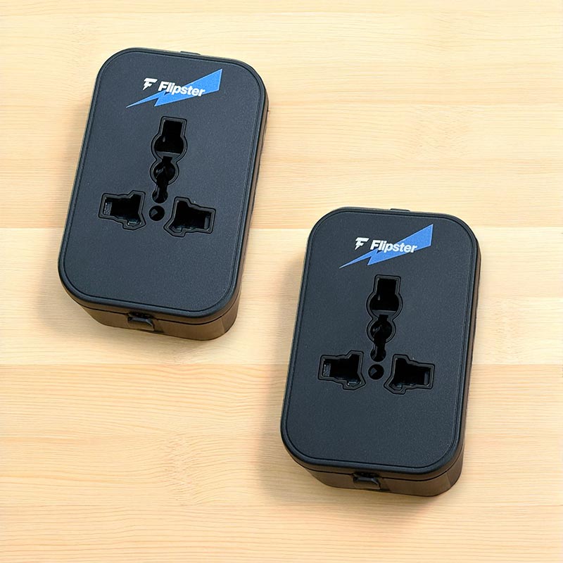 Description: Universal travel adapter with 2 × USB-A, 2 × Type-C ports